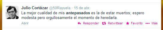 «La mejor cualidad de mis antepasados es la de estar muertos, espero modesta pero orgullosamente el momento para heredarla» Julio Cortázar by @50Rayuela